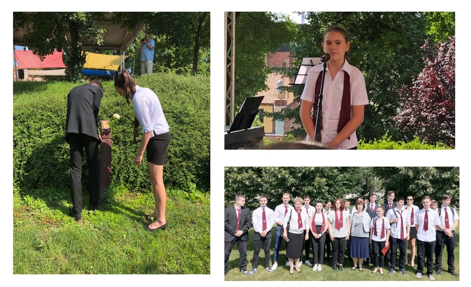A hagyományokhoz híven pécsi középiskolások részvételével rendezték meg a Zsolnay Negyedben a nemzeti összetartozás napi rendezvényt, melyen iskolánkat a 11. B osztály és osztályfőnökük, Békei Mária tanárnő képviselte. Az ünnepi műsorban szerepelt Ujhelyi Babett (5. B) is, aki Majthényi Flóra: Mi a haza? című versét szavalta. A program végeztével a diákok elhelyezték virágaikat az Összetartozás fájánál és testvériskolánk, a vajdasági Zenta gimnáziumának kopjafájánál.