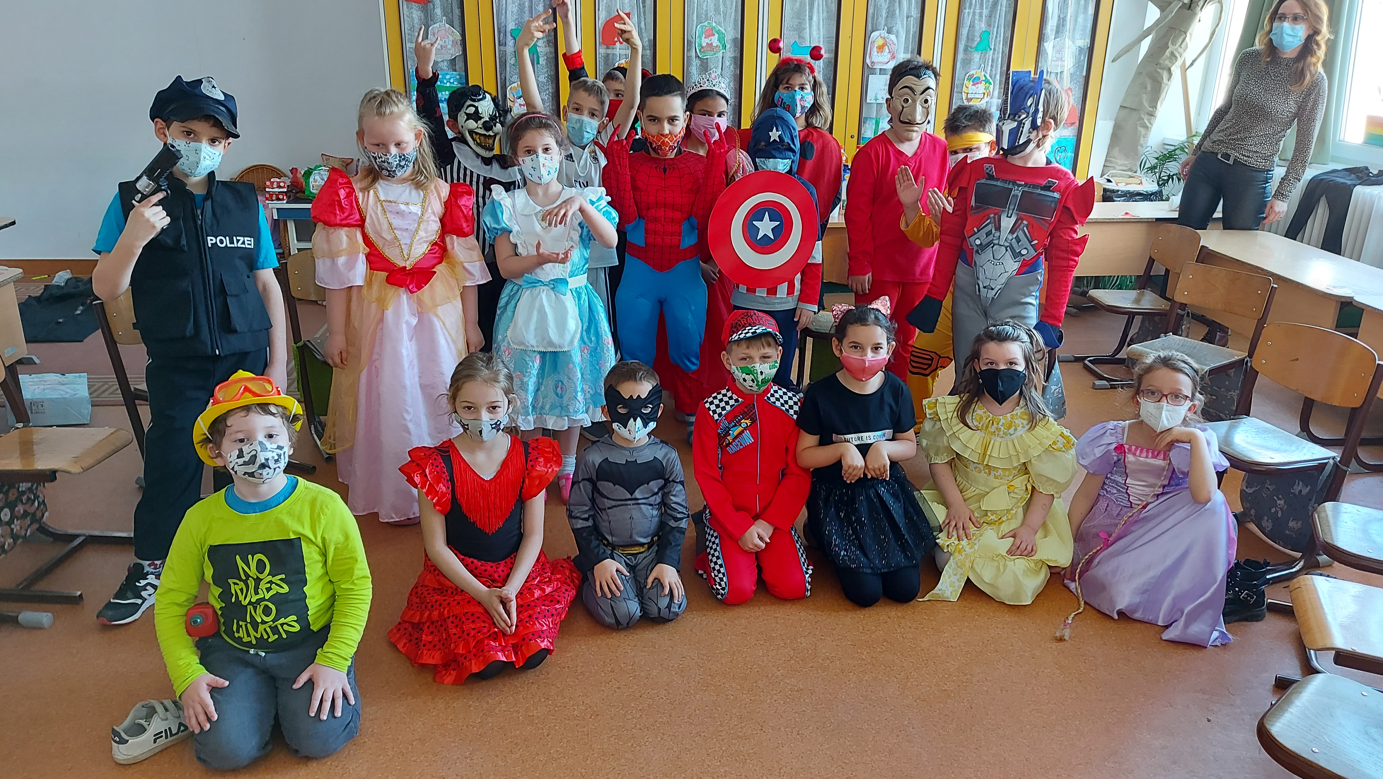 A múlt pénteki farsangra hangulatos díszbe öltöztek a termek és az alsós folyosó.Látványos és ötletes jelmezeket öltöttek alsó tagozatos és 5-6. osztályos diákjaink is, sokat nevettek és játszottak a délután folyamán.