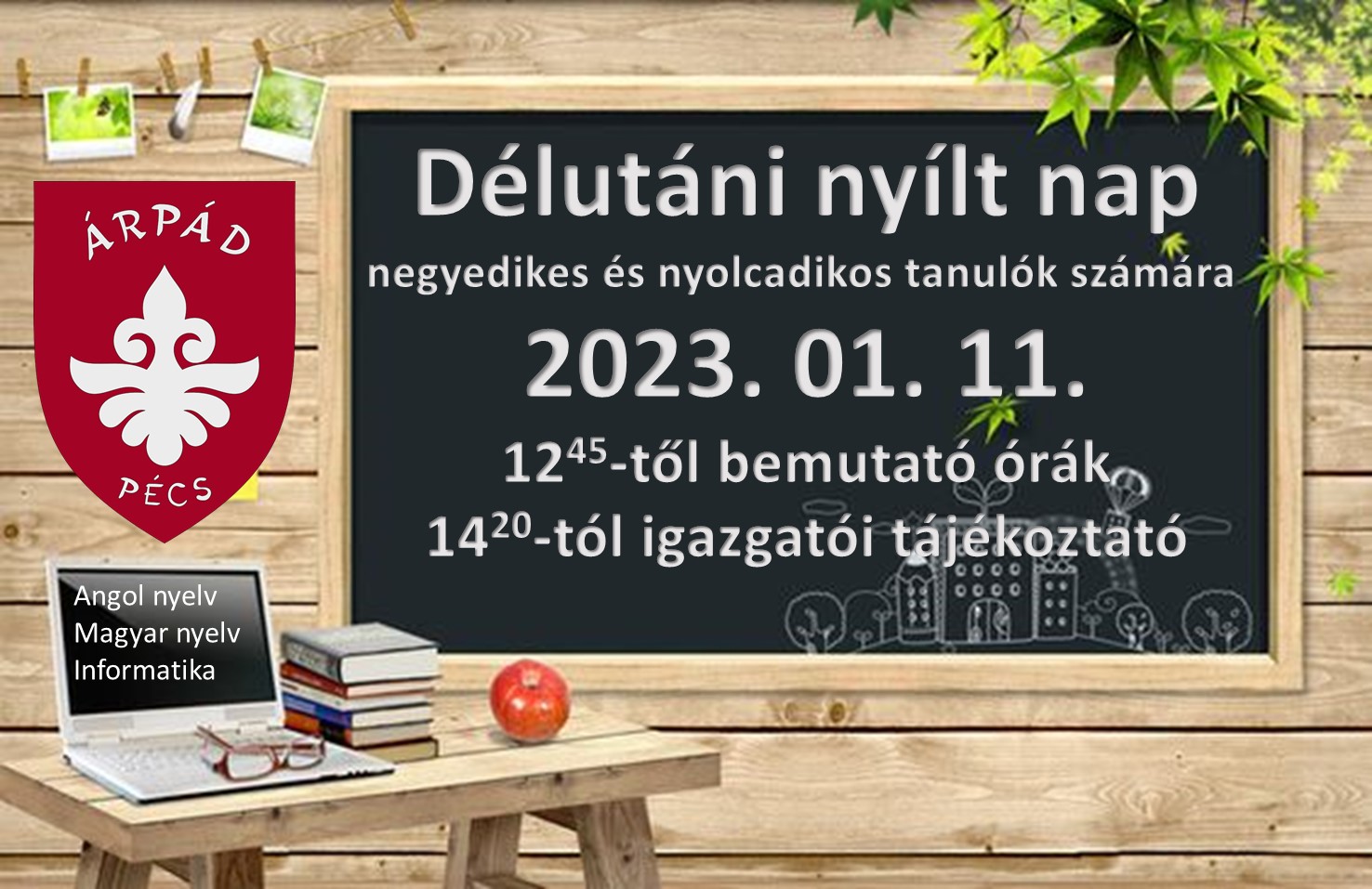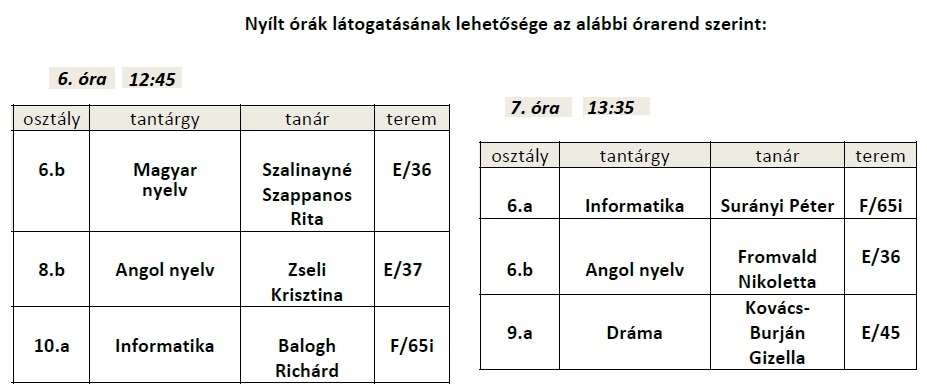 A rendezvény 2023. január 11-én, szerdán délután 12.45 - kor kezdődik óralátogatási lehetőséggel, majd 1420- tól iskolánk igazgatója tart tájékoztatót.